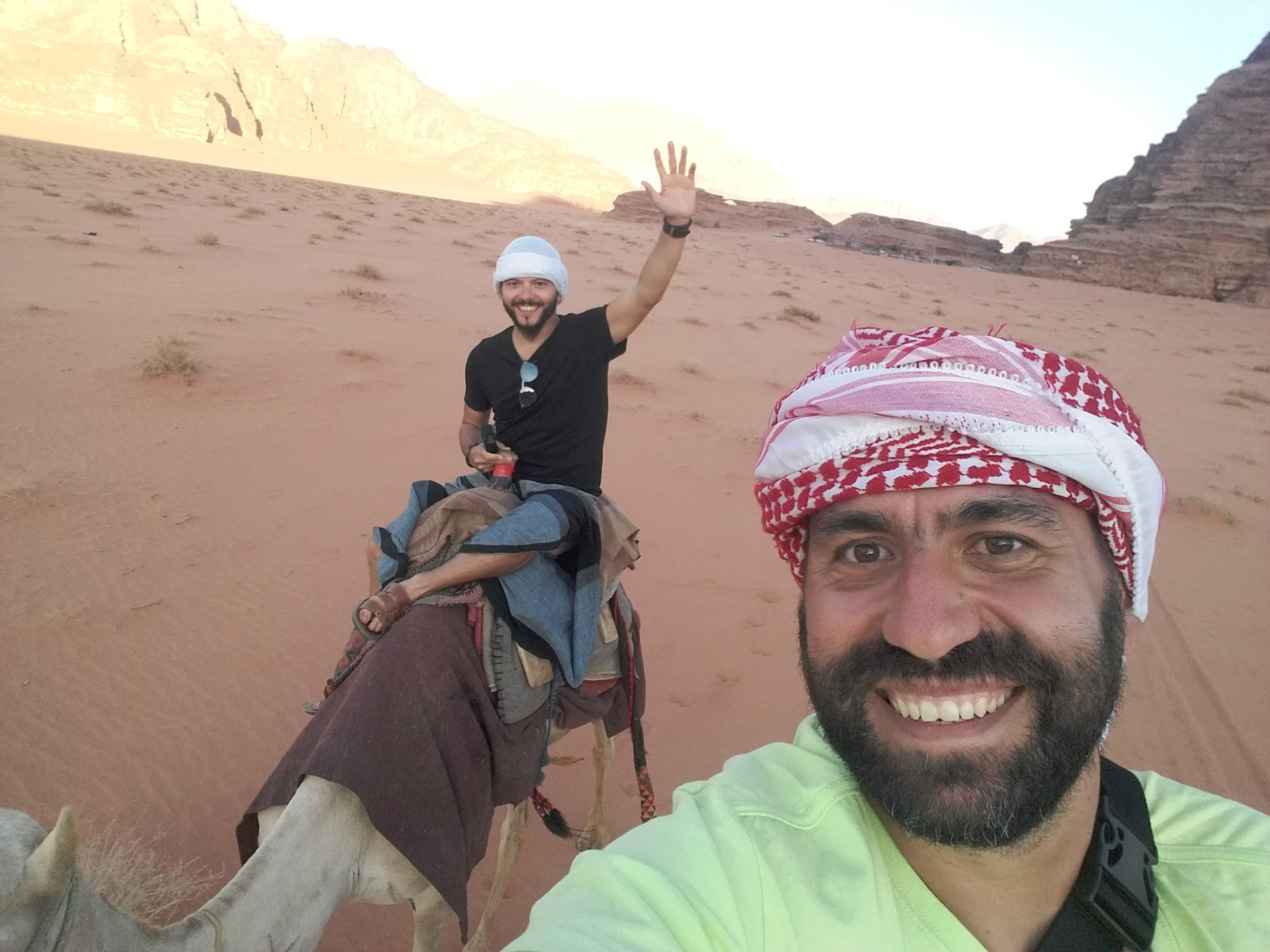Κατά την επιστροφή μας στο κάμπινγκ θα συναντούσαμε τις καμήλες που είχαμε κανονίσει με τον Αλί για να κάνουμε την βόλτα μας στο ηλιοβασίλεμα και πράγματι τα χρώματα ήταν υπέροχα. Για να είστε άνετα πάνω στην καμήλα βάλτε το ένα πόδι σας μπροστά από την χειρολαβή της σέλας, πραγματικά βολεύει πολύ!